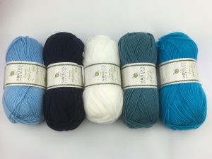 The pattern uses five colours and I happened to have four blue shades in my stash so went with those plus white to make five colours for this design.