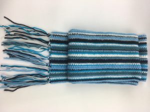 Here is a blue version of my Stash Buster Scarf. I wrote up the pattern that I created when I made the pink/purple version and realised that I didn’t have yarn quantities so I made it up again in blue so I could get the weight of yarn required. I also took photos during the making process so that I could add them to the pattern.